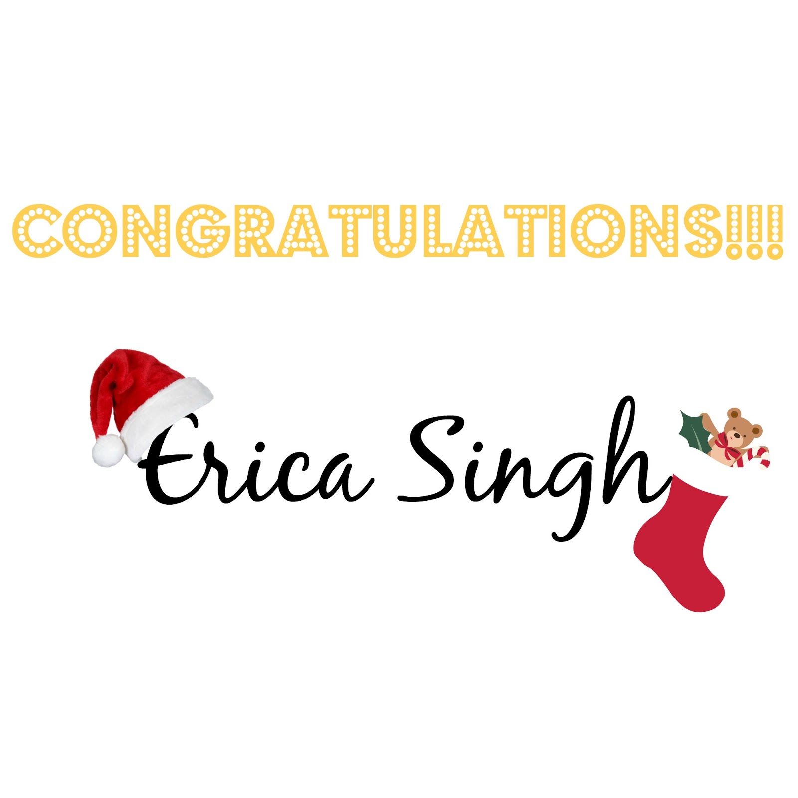 Congratulations to Erica Singh on winning the #TCDGiveaway! Hope you enjoy the goodies and Have a Merry Christmas!